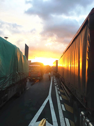 圖為分流現(xiàn)場 為保證車道安全、有序、暢通,該所認(rèn)真對待,除做好零鈔、備用發(fā)票、備用打印機等常規(guī)的準(zhǔn)備工作外,凌晨4點30分,行政值班人員、征費二班全體收費員便開始在車道嚴(yán)以待陣,接到分流通知后,開啟全部車道,同時ETC切換成人工。班長去內(nèi)廣場維持通行秩序,其中一名員工在外廣場指揮及做好導(dǎo)向工作,行政值班人員參與車道旁站,業(yè)務(wù)熟練的員工在崗收費,在場人員分工有序,密切配合。直至7點,隧道中排燈拆除完畢,收費車道上僅3個出口可以通行,不過在全體人員的共同努力下,未發(fā)生擁堵事件,該所順利完成分流工作。 夏蓮萍