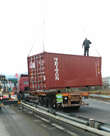 12月15日10:10分左右,一輛車牌為浙B88C06的集裝箱車在臺州南副站選擇出口車道時,因變道和出口運載汽車的長掛車發(fā)生碰撞,使得未鎖牢的集裝箱箱體甩落下來,砸到護欄及進口一輛正在通行的貨車車頭,造成護欄變形、貨車車頭受損嚴重,所幸無人員受傷。