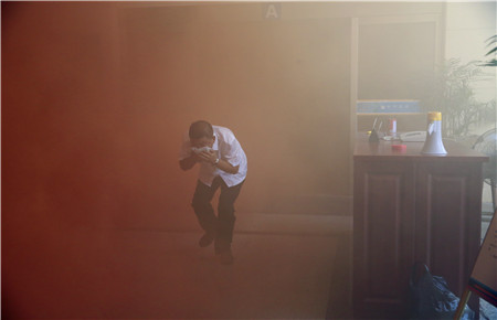 “消防演練現(xiàn)在開(kāi)始”隨著現(xiàn)場(chǎng)總指揮項(xiàng)同富的一聲令下,在刺耳的警笛聲和濃煙中,天和大廈全體人員在樓層疏散引導(dǎo)員的指引下迅速向一樓撤離。 這是6月26日臺(tái)州高速集團(tuán)聯(lián)合多家單位組織的天和大廈大樓消防疏散演練的重頭戲?;馂?zāi)模擬的著火點(diǎn)在大廈20樓,在災(zāi)情發(fā)生后,微型消防站消防隊(duì)員身穿防護(hù)服,攜帶消防設(shè)備在20樓處置模擬火情。同時(shí)消控室發(fā)動(dòng)應(yīng)急廣播,通報(bào)火情,下達(dá)全大樓疏散指令。各樓層疏散引導(dǎo)員立即組織本樓層人員以濕毛巾捂住口鼻,彎腰低頭從消防樓梯魚(yú)貫而出向下撤離。