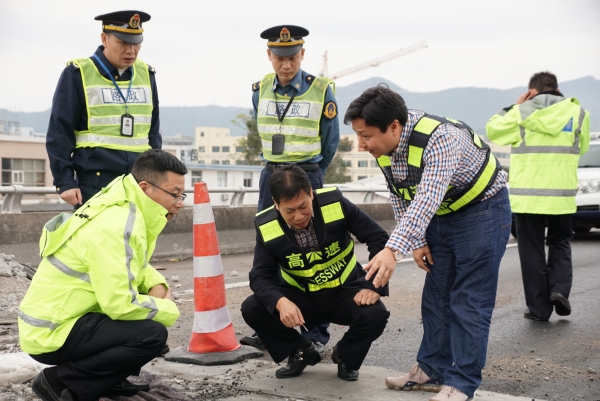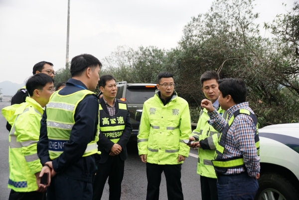 集團聯(lián)合高速交警、路政檢查第一階段斷流施工情況 11月7日上午,集團聯(lián)合高速交警、高速路政等單位實地踏勘了集團沿線斷流施工現(xiàn)場,檢查第一階段施工進展情況及現(xiàn)場交通管控點、收費站分流點交通流等情況,集團總工程師江輝、高速交警臺州支隊副支隊長沈汝寬、高速路政領(lǐng)導參加檢查。